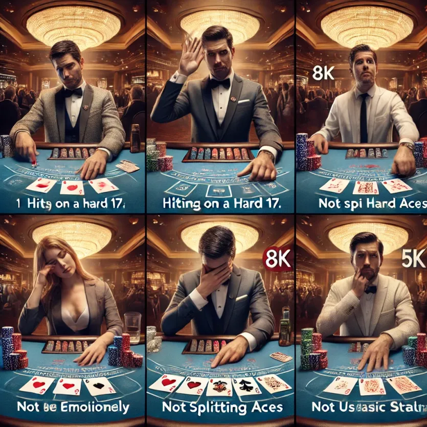 수익을 가로막는 결정적 함정: 블랙잭 플레이어가 자주 범하는 5가지 주요 실수와 그 해결 전략을 인지하고 개선하는 것만으로도 블랙잭 수익률은 크게 달라질 수 있습니다.